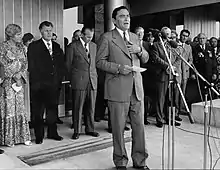 Олександр Дубчек перед будівлею Матиці словацької