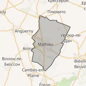 - Розташування муніципалітету Матьє на мапі Франції та сусідні муніципалітети