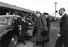 Барон Сигізмунд фон Браун (в центрі) зустрічає Баяра під час візиту до Німеччини (9 травня 1958).