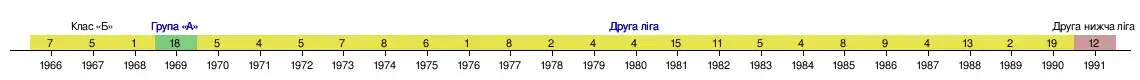 | 1993 | Друга ліга, зона 1, 8-14 місця | 13 | Виліт у Третю лігу |