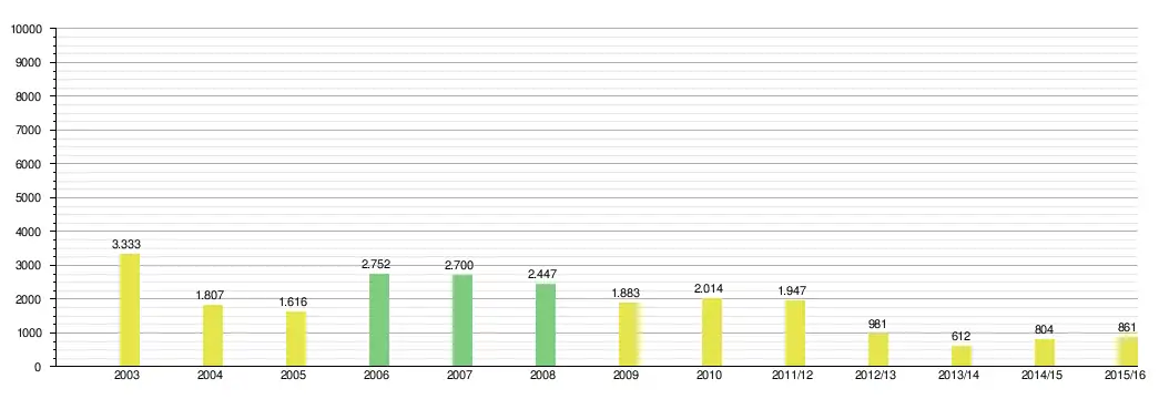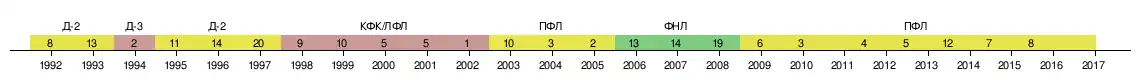 | 2008 | Перший дивізіон | 19 | Виліт у Другій дивізіон |