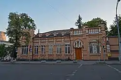 Збудовано за проектом архітектора Євгена Єрмакова у стилі модерн[1]. Будинок цегляний, з підвалом. Одноповерховий по фасаду, двоповерховий зі сторони провулку Виноградний.