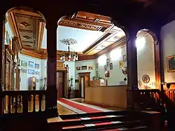 В інтер'єрі збереглися старовинні меблі, сейф, дзеркало Терещенка, дерев'яне різьблення стелі, китайські вази XVIII століття.