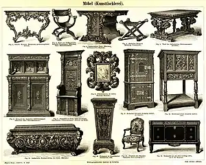 - Heinrich Kreisel, Georg Himmelheber: Die Kunst des deutschen Möbels: Möbel und Vertäfelungen des deutschen Sprachraums von den Anfängen bis zum Jugendstil. Beck, München. Bd. 1.: Von den Anfängen bis zum Hochbarock von Heinrich Kreisel, 3. Aufl.. 1981. Bd. 2: Spätbarock und Rokoko von Heinrich Kreisel, 1970. Bd. 3: Klassizismus, Historismus, Jugendstil von Georg Himmelheber, 2., neu bearb. Aufl.. 1983.