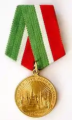 - Медаль «У пам'ять 1000-річчя Казані» — з латуні, має форму кола діаметром 32 мм, з опуклим бортиком з обох сторін.