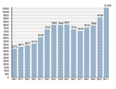 Станом на 31 грудня 2014 року в муніципалітеті офіційно проживало 1185 іноземців з 58 країн, серед них 286 громадян країн Євросоюзу та 22 громадяни України.[4]