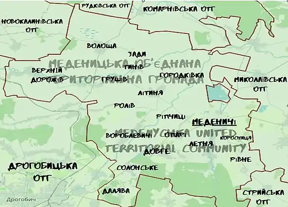 | Населені пункти | смт Меденичі, Опарі,Летня,Грушів, Літиня, Ріпчиці, Вороблевичі, Далява, Солонсько, Довге, Верхній Дорожів, Городківка |