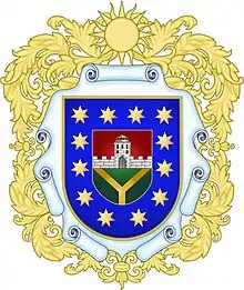 В основі герба іспанський щит, обрамлений еклектичним картушем, увінчаний трьохзубчастою короною (засвідчує колишній статус міста).