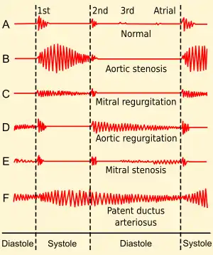 Методика визначення стану серця, що базується на аналізі звуків, що генеруються ним, систематизована в рамках такого розділу практичної діагностики, як фонокардіографія. Серед лікарів існує думка про те, що ця методика діагностування втратила актуальність в зв'язку з розвитком техніки ехокардіографії. Однак можливість спостерігати за рухом поверхні серця, взагалі, не дає можливості однозначно фіксувати причини змін в характеристиках звуків серця. Тому методи ехокардіографії продовжують розвивати[3] і на сьогодні з використанням новітніх засобів реєстрації та обробки звуків. Діагностична значимість фонокардіограми визначається тим, що вона містить дані про ту частину спектру в звуках серця, яка не сприймається вухом лікаря. На малюнку показані типові записи нормальних та аномальних звуків серця.