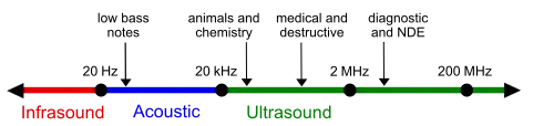 Тут вказана обмежена смуга частот для ультразвуку. Але на сьогодні, практично весь частотний діапазон, до декількох МГц, використовують в медичній акустиці.