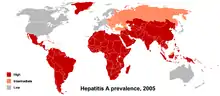 ![]() Поширення гепатиту А у світі, 2005 рік |
