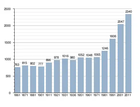 Станом на 31 грудня 2014 року в муніципалітеті офіційно проживали 232 іноземці з 26 країн, серед них 52 громадяни країн Євросоюзу та 4 громадяни України.[4]