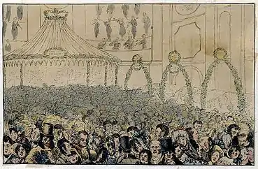 У 17-18 ст. зібрання людей в публічних місцях стали називати «натовпом» — це аудиторія простолюдин робочого класу, які збиралися разом в одному місці і в конкретний час для отримання досвіду певної рутинізованої поведінки (наприклад, публічні вішання або карнавали).