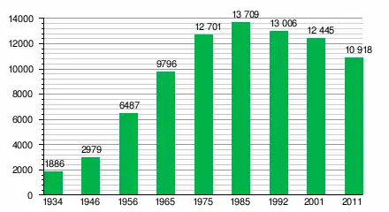 За даними перепису населення 2011 року у місті проживали 10 918 осіб.