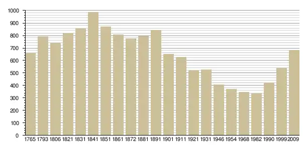 Динаміка населення (Baratier, Duby & Hildesheimer pour l’Ancien Régime ; Insee[3], EHESS[4] pour les chiffres issus des recensements légaux ):