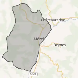 - Розташування муніципалітету Мезель на мапі Франції та сусідні муніципалітети
