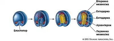 Формування мезодерми у ланцетника шляхом випинання карманів первинної кишки