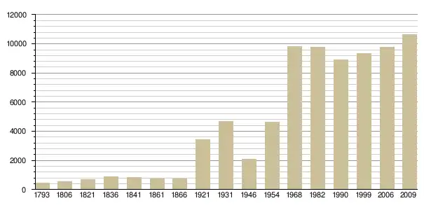 Динаміка населення (Ehess[4] і INSEE[5] ):