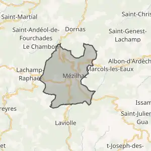 - Mézilhac sur le site de l'Insee, наведено за французькою вікіпедією