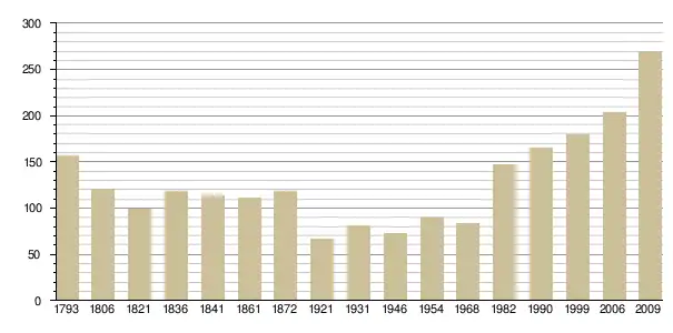 Динаміка населення (Insee[4], Des villages de Cassini aux communes d'aujourd'hui [5] і voir note pour 1789. ):