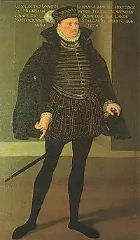 Для оборони віри та протистояння імператору Карлу V у 1550 році мекленбурзькі герцоги створили союз з маркграфом Бранденбургу та герцогом Пруссії, а в 1551 році уклали Торгауський договір про об'єднання зусиль протестантських князів цілої Північної Німеччини. Після смерті у 1552 році Генріха V Йоганн Альбрехт І об'єднав під своєю владою весь Мекленбург. У тому ж році у герцогстві були розпущені монастирі, а їхні землі перейшли до державної скарбниці. До Ростоцького університету запросили протестантських богословів. Щоправда, права Йоганна Альбрехта І на престол майже одразу були оскаржені його братом Ульріхом, який звернувся за підтримкою до самого імператора. Втім, Карлу V приборкати князів-протестантів не вдалося. Він зрікся престолу, а його наступник погодився укласти Аугсбурзький мир (1555), який гарантував бунтівливим васалам право самостійно визначати віросповідання у своїх державах. Наполегливий Ульріх зрештою звернувся до посередника-протестанта — бранденбурзького маркграфа, який у 1556 році ухвалив «Руппінське рішення», за яким брати були визнані співправителями Мекленбургу з резиденціями у Шверіні (Йоганн Альбрехт І) та Гюстрові (Ульріх). Обидва герцоги намагалися патронувати освіту та науку, збирали бібліотеки і мистецькі колекції. Картографом Йоганна Альбрехта І був Тілеман Стелла. Ульріх Гюстровський брав участь в диспутах з Тихо Браге та Давидом Хитреусом, листувався з Генріхом Рантцау.