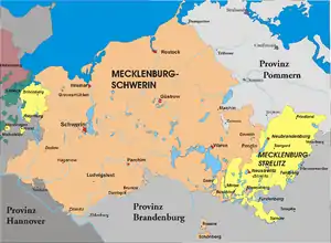 У 1867 році обидва мекленбурзькі герцогства приєдналися до Північнонімецького союзу, а у 1871 році — до Німецької імперії. Навіть у консервативному Другому рейху їх вважали прихистком застою та реакції. Бісмарку приписують слова, про те, що з кінцем світу він переїде до Мекленбургу, бо там все відбувається із запізненням на півстоліття. Це була єдина територія в Німецькій імперії, яка не мала новітньої конституції. Устрій Мекленбургу був надзвичайно заплутаний, герцогства складалися з доменних та шляхетських амтів. До того ж існували три «лицарських» округи (Мекленбург, Венден і Штаргард). Столицями були Шверін і Нойштреліц, проте окружні установи діяли в Ростоку та Нойбранденбурзі.
