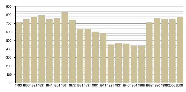 Динаміка населення (base Cassini de l'EHESS pour les nombres retenus jusqu'en 1962[4], base Insee à partir de 1968 (population sans doubles comptes puis population municipale à partir de 2006)[5] · [6] ):