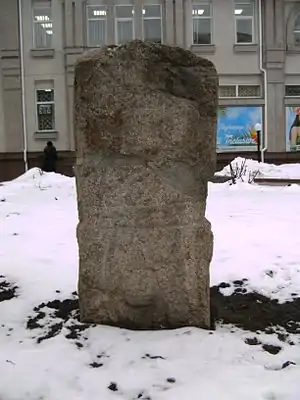 ![]() Мельгунівський курган Деякі дослідники вважають, що саме ця скіфська баба була знайдена на вершині Мельгуновського кургану | |