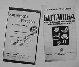1911 р. Мельник видає для п'ятого класу середніх шкіл книгу «Мінералогія і геологія», написану на основі тодішніх джерел і власного досвіду, що спирався на матеріали, зібрані в західних областях України. Було подано основи кристалографії й систематики мінералів, основи геології й палеонтології. В підручнику обсягом 192 сторінки вміщено 149 ілюстрацій і власноруч виготовлена геологічна карта Галичини. Інші регіони опрацьовані на основі літератури. Тільки на назву тернослив подано 84 синоніми, на картоплю — 72, і то переважно із західного регіону. Крім того, йому вдається випустити ще одну книгу — «Ботаніку» для другого класу середніх загальноосвітніх шкіл, у якій він описав головні рослини від одноклітинних до квіткових, популярно пояснив їх анатомічну будову, фізіологічні вияви, вмістив рекомендації щодо підживлення, щеплення, а наприкінці подав географію рослин на західному терені українських земель.