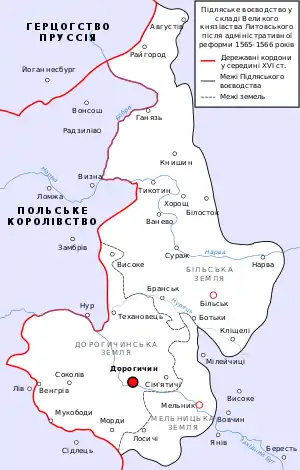 Зимою 1513—1514 року виділена Сигізмундом Старим з Троцького воєводства Великого князівства Литовського та включена до новоствореного Підляського воєводства ВКЛ[5]. У складі Підляського воєводства після Люблінської унії 1569 року увійшла до складу Корони Королівства Польського Речі Посполитої[6]. У 1616 році від Берестейського повіту Великого князівства Литовського до Мельницького повіту Королівства Польського передані володіння Бокавичі, Вітулин, Городище, Константинів, Межиріччя, Полюбичі, Росаш, Яблонь та інші[7].