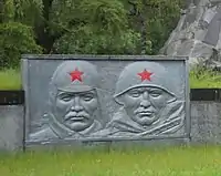 | Обеліск, Скорботна мати та вічний вогонь | Вояки РСЧА часів Другої Світової та українсько-більшовицької війн | Панно із зображенням радянських вояків, що атакують | Стіна пам'яті з іменами загиблих |