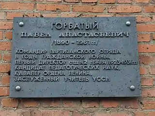 ![]() | Горбатий Павло Анастасович, український радянський педагог, методист у галузі математики, заслужений вчитель Української РСР, лауреат премії ім. К. Д. Ушинського. | Вулиця Героїв Майдану, 13. На будівлі Барського ліцею № 2 | |