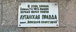 ![]() | В цій будівлі 1 червня /14/ 1917 р. вийшов перший номер газети Луганська правда, колишній «Донецький пролетарій» рос. В этом здании 1 июня /14/ 1917 г. вышел первый номер газеты Луганская правда, бывший «Донецкий пролетарий» | вул. Пушкіна, 2 | ||