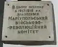 ![]() | на будівлі залізничного вокзалу | 22 листопада 1917 року на станції Маріуполь в результаті збройного зіткнення з контрреволюціонерами, червоногвардійці захопили вагон із зброєю. |
