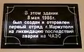 ![]() | Парк Петровського, на будівлі палацу спорту «Азовмаш» | В цій будівлі 8 травня 1986 року був створений і відправлений перший загін міста Маріуполя на ліквідацію наслідків аварії на Чорнобильській АЕС. |