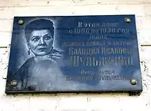 - МЕМОРІАЛЬНА ДОШКА ПАМ'ЯТІ ЛЮБОВІ МАЛОЇ