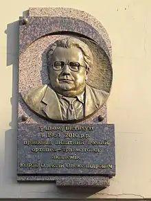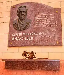 ![]() | Андоньєву Сергію Михайловичу, який працював у цьому будинку. | проспект Науки, 9 | 22.07.2011[5] |
