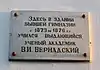 ![]() | Вернадському Володимиру Івановичу, українському філософу, природознавцю і мислителю, академіку, який навчався в цьому будинку, в першій чоловічій гімназії у 1873—1876 рр. | Пр. Московський, 24 | 27 листопада 2018 |