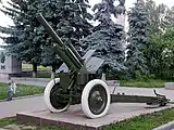 122-міліметрова гаубиця М-30 1938 року створена під керівництвом Ф. Петрова. На відміну від танка, вона в 1943 році брала участь у звільненні міста від німецько-фашистських загарбників. Через те, що під час бою гаубиця була пошкоджена солдати вирішили її залишити на території Сумського артучилища. У 1975 році, коли відкривали меморіальний комплекс, гаубиця стала одним з його складових частин[1][2].