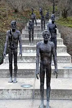 Автор меморіалу — скульптор Олбрама Зоубек. У створенні концепції меморіалу також брали участь архітектори Ян Керел та Зденек Гельзл. Меморіал розташований на масивних сходах звужених у верхній частині, що спускаються зі східного схилу пагорба Петршин. Композиція складається з семи чоловічих скульптур, що спускаються сходами. Нижня статуя ціла, інші поступово «руйнуються», у них утворюються розломи, зникають кінцівки… Це символізуює собою не тільки фізичні та психічні страждання жертв політичних репресій комуністичного режиму, але також їх мужність та стійкість.