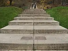 У нижній частині сходів металеві пластини з написом: «Жертвам комунізму 1948—1989: