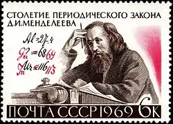 Дмитро́ Іва́нович Менделє́єв (рос. Дмитрий Иванович Менделеев; 27 січня (8 лютого) 1834, Тобольськ — 20 січня (2 лютого) 1907, Санкт-Петербург) — російський хімік, один з авторів періодичної таблиці хімічних елементів. У 1882 році Лондонське королівське товариство присудило золоті медалі Деві з формулюванням «За відкриття періодичних співвідношень атомних ваг» спільно Менделєєву й німецькому хіміку Лотару Юліусу Маєру.