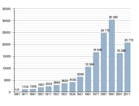 Станом на 31 грудня 2014 року в муніципалітеті офіційно проживало 3358 іноземців з 80 країн, серед них 1661 громадянин країн Євросоюзу та 53 громадяни України.[4]