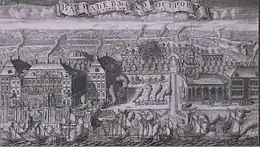 Гравер Олексій Зубов. «Садиба Меншикова з посольським палацом і бароковим садом», 1715 р.