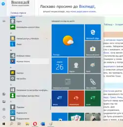 Windows 10 пере-впровадила меню «Пуск» у переглянутому вигляді. Воно використовує двоколонний дизайн, подібний до версії Windows 7, за винятком наповнення правого боку плитками подібно до екрану «Пуск» Windows 8. Застосунки можуть прикріплюватися до правої половини, а їхні відповідні плитки можуть змінювати розмір і групуватися у визначені користувачем категорії. Ліва колонка відображає вертикальний список, який містить часто використовувані застосунки, та посилання на меню «Всі застосунки», Провідник, Налаштування та опції живлення. Деякі з цих посилань і додаткові посилання на такі папки, як Завантаження, Зображення та Музика, можуть додаватися через сторінку Налаштувань «Виберіть, які папки з'являться в Пуск». Меню «Пуск» може змінювати розмір або розміщуватися на повноекранному дисплеї, що нагадує екран «Пуск» Windows 8/8.1 (хоча прокручуваний вертикально, а не горизонтально)[4][5]. Меню «Пуск» також входить до цього стану при увімкненому «Режимі планшету»[6][7][8][9].