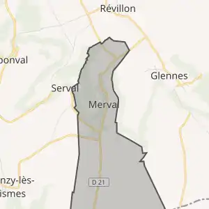 - Розташування муніципалітету Мерваль на мапі Франції та сусідні муніципалітети