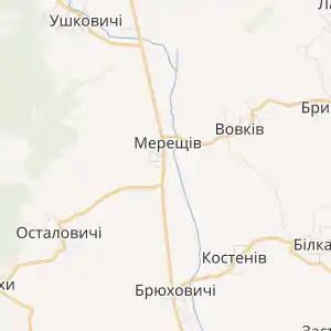 Мерещі́в — село Перемишлянського району Львівської області. Розташоване за 6 км на південь від Перемишлян. Сусідні населені пункти — Вовків, Брюховичі, Костенів, Осталовичі, Ушковичі та Неділиська. На схід від села протікає річка Гнила Липа, у яку впадає струмок Зелений. Паралельно до річки пролягає автомобільна траса Львів — Івано-Франківськ. Сільська забудова розташована на правому березі Гнилої Липи, головним чином вздовж дороги.