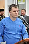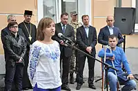 Дмитро Мерзлікін виступає на відкритті пам'ятної дошки Олександрові Орляку на фасаді Тернопільської школи № 5.