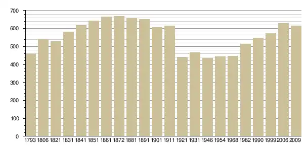 Динаміка населення (base Cassini de l'EHESS pour les nombres retenus jusque 1962[3], base Insee à partir de 1968 (population sans doubles comptes puis population municipale à partir de 2006)[4] · [5] ):