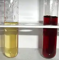 - дифенілкарбазон (а також дифенікарбазид), у вигляді 1% розчину в 95% етанолі. Повне відтитрування аніонів і поява надлишкової кількості катіонів веде до утворення синього осаду комплексу (у слабокислому та нейтральному середовищах) або ж посиніння розчину (в HNO3 6 моль/л).